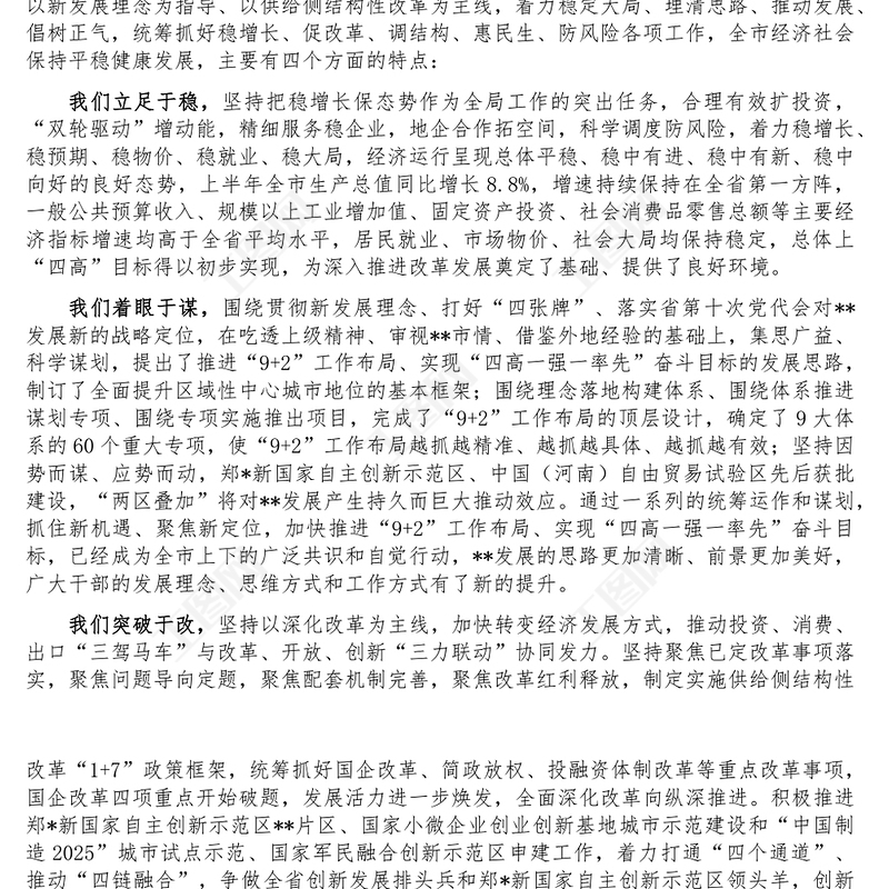 市委書記在全市“六穩(wěn)”“六?!濒呦蛏蠣?zhēng)取工作會(huì)議上的講話包含