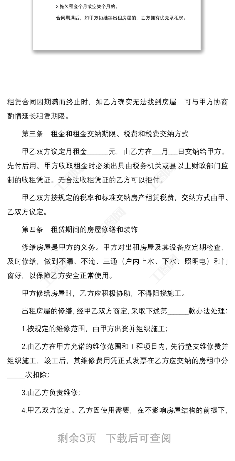 民法典房屋租賃合同范本 Array