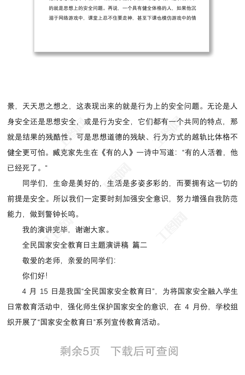工圖網提供2022全民國家安全教育日主題演講稿發言材料三篇供會員免費下載。更多精彩黨課PPT素材,盡在工圖網。
