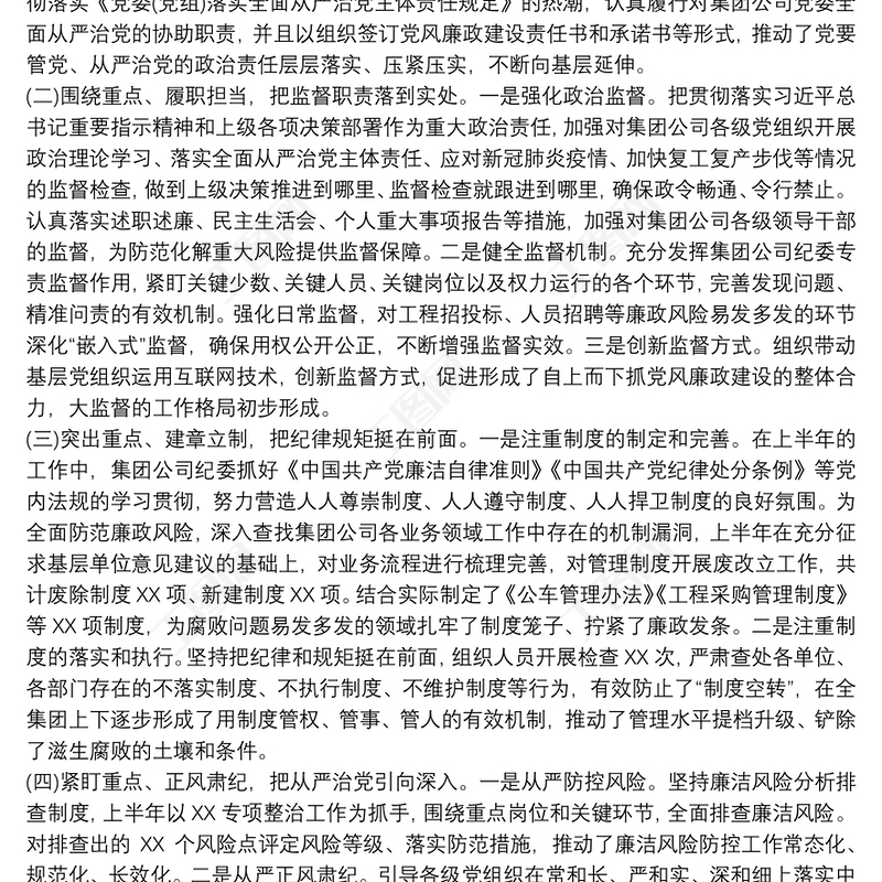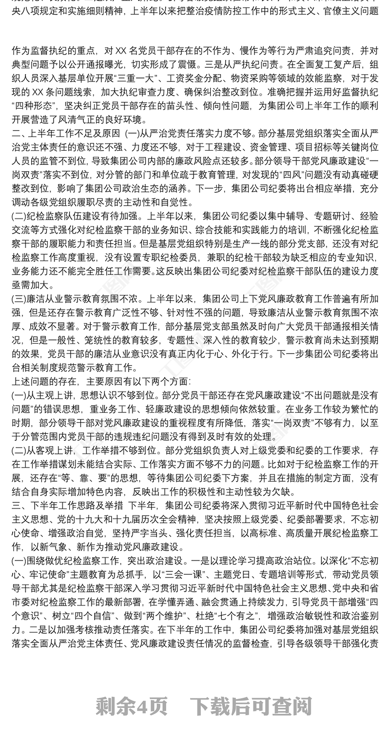 20xx年上半年紀檢監察工作總結及下半年工作打算最新
