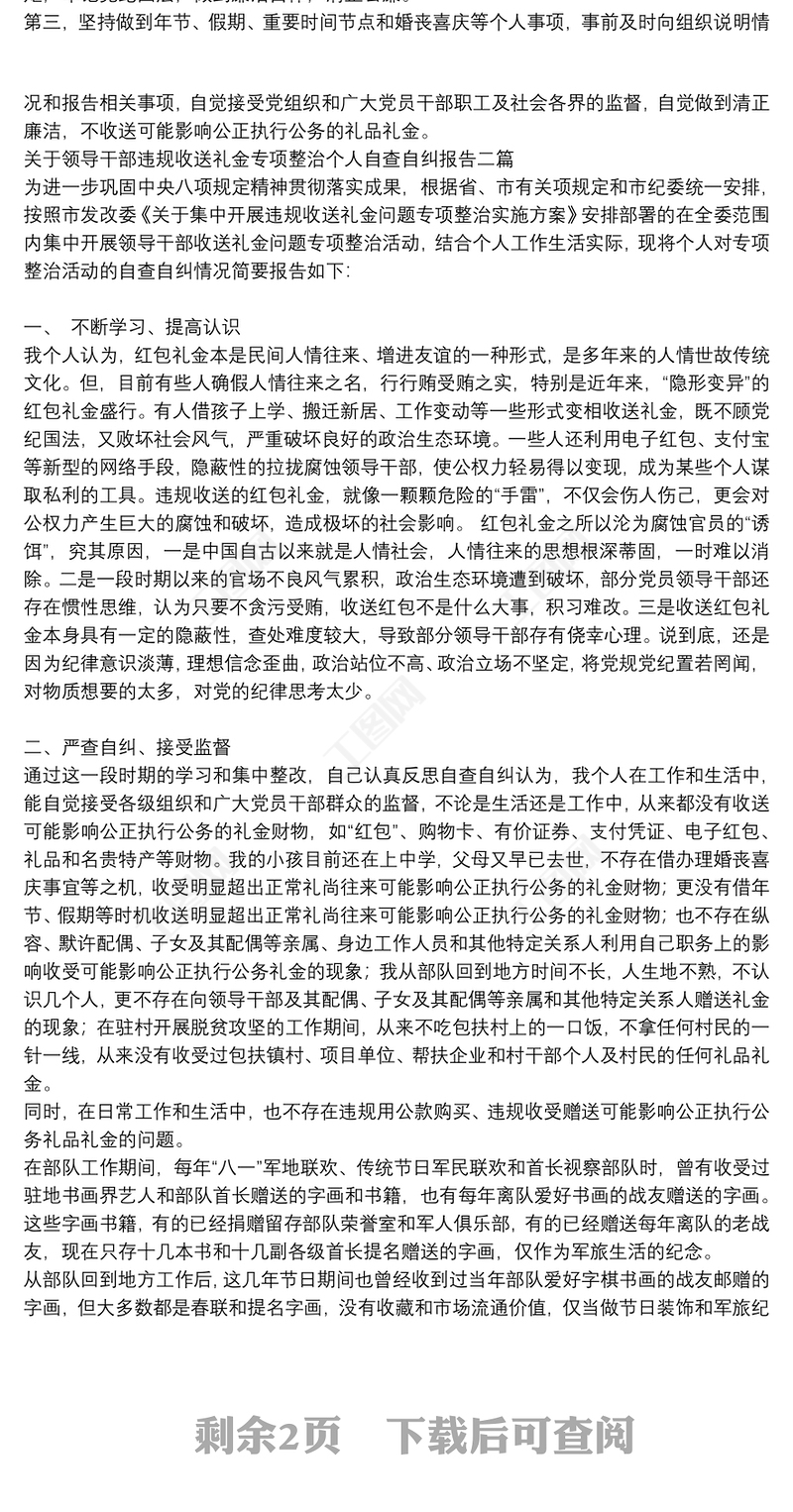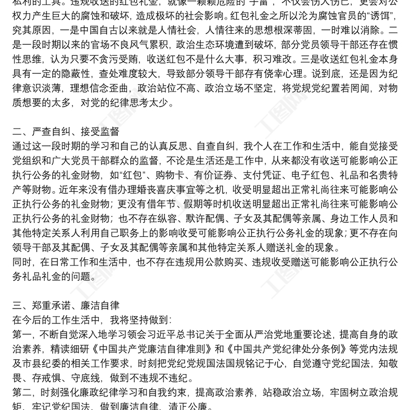 工圖網(wǎng)提供關(guān)于領(lǐng)導(dǎo)干部違規(guī)收送禮金專項整治個人自查自糾報告三篇供會員免費下載。更多精彩黨課PPT素材,盡在工圖網(wǎng)。