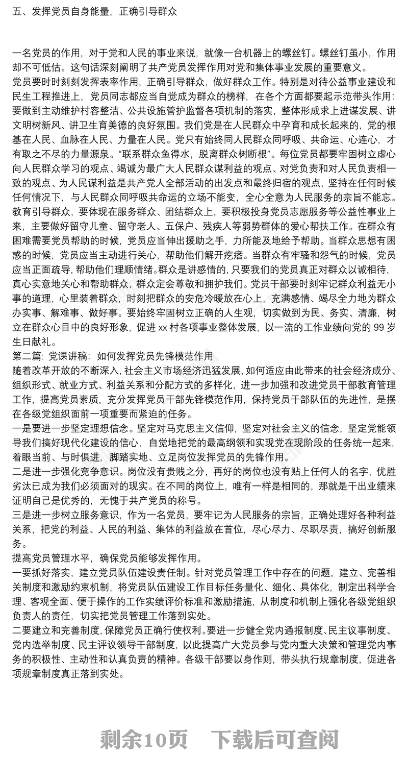 工圖網提供黨課講稿:如何發揮黨員先鋒模范作用范文六篇供會員免費下載。更多精彩黨課PPT素材,盡在工圖網。