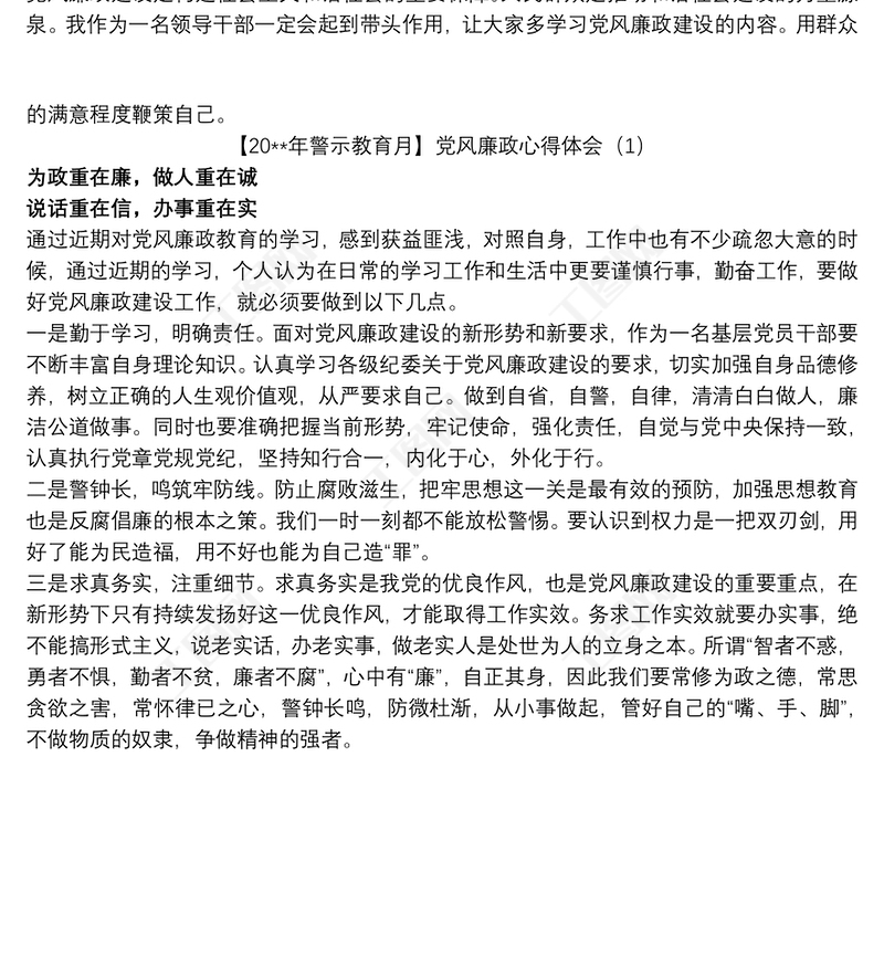 黨員干部黨風廉政建設學習心得體會三篇包含
