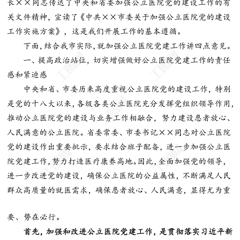 > 領(lǐng)導(dǎo)講話 > 在全市加強(qiáng)公立醫(yī)院黨的建設(shè)工作推進(jìn)會(huì)議上的講話.DOCX 【圖片、文字、動(dòng)畫均可編輯】