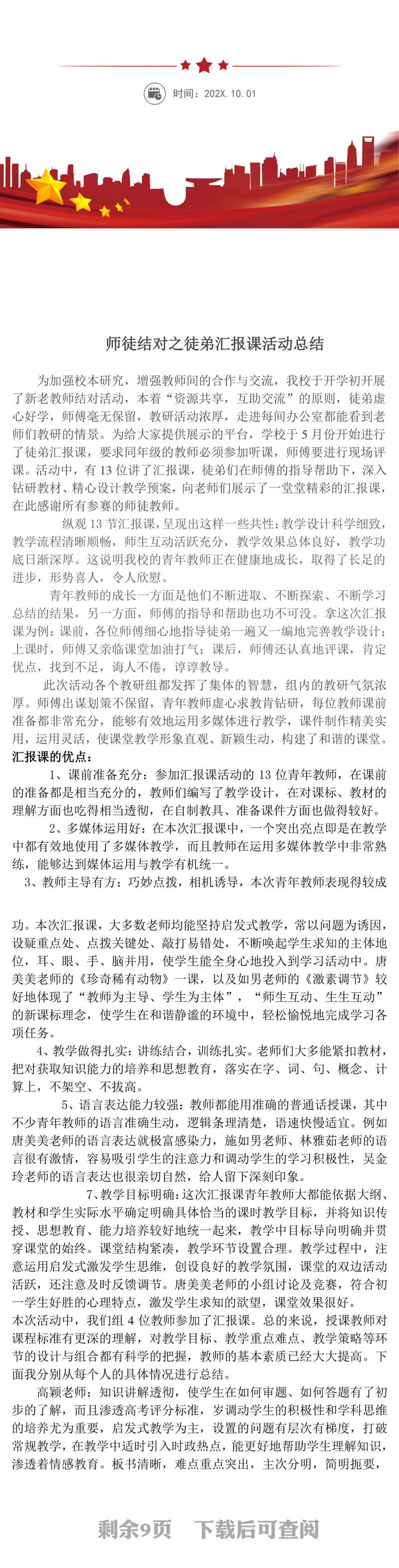 師徒結對之徒弟匯報課活動總結,高清DOC圖片設計素材,1920x1080:0DPI,師徒結對,徒弟匯報課,活動總結,word模板,word格式,學校,文檔,公司文檔,文件,合同,電子文檔,word模板,商務,學校文檔,簡潔大方,可編輯文檔 Array