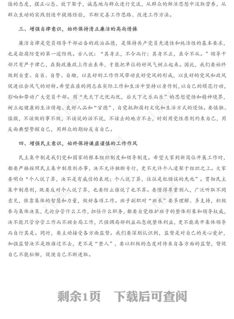在新任職干部集體談話會上的講話,集體談話,公文范文 Array