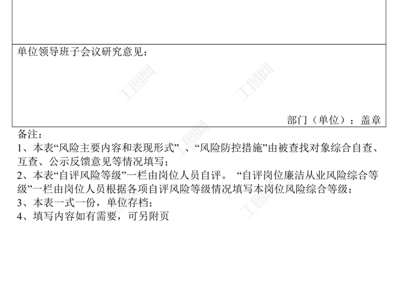工圖網(wǎng)提供崗位廉政風(fēng)險(xiǎn)點(diǎn)等級(jí)確定和防控措施審核備案表供會(huì)員免費(fèi)下載。更多精彩黨課PPT素材,盡在工圖網(wǎng)。