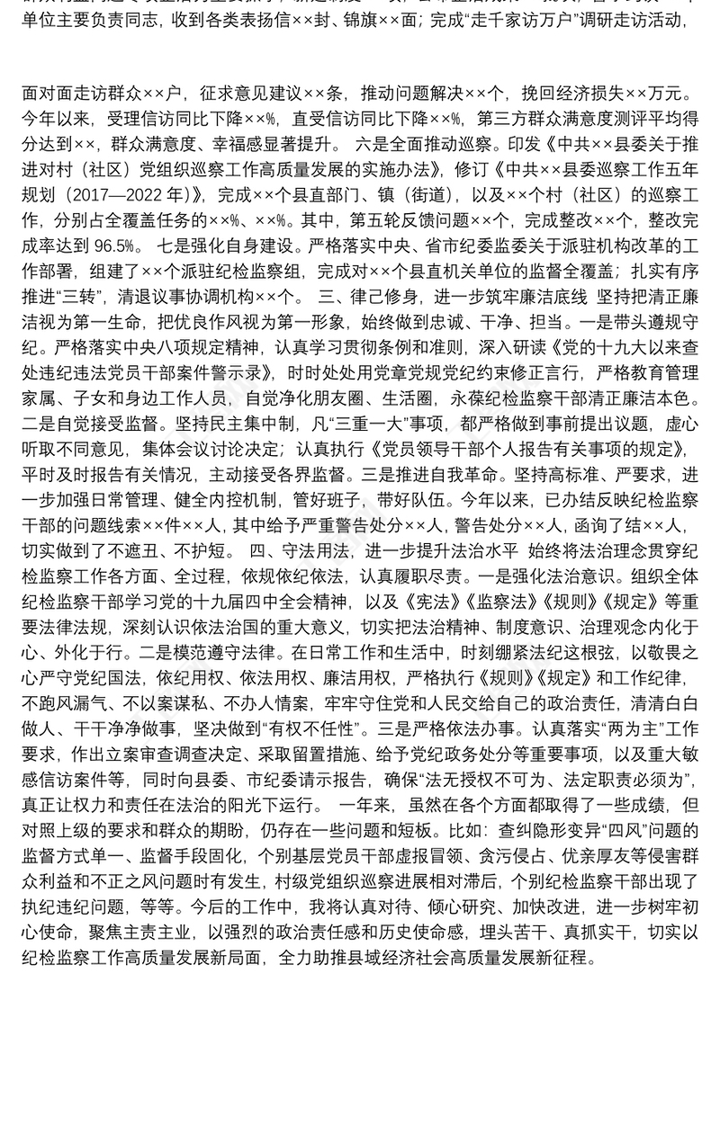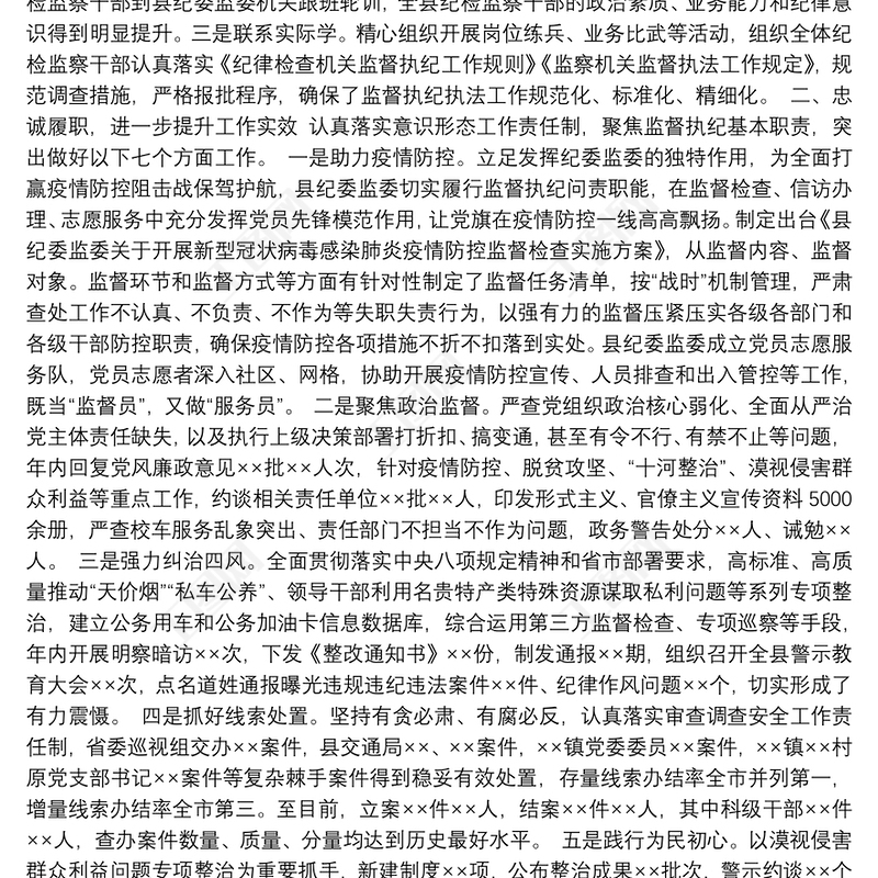 縣委常委、紀(jì)委書記、監(jiān)委主任2020年述學(xué)述職述責(zé)述廉述法報告