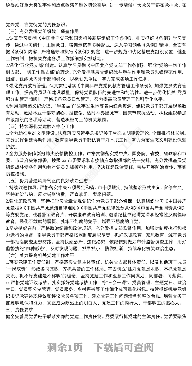 二〇二〇年黨建工作要點黨建工作計劃包含