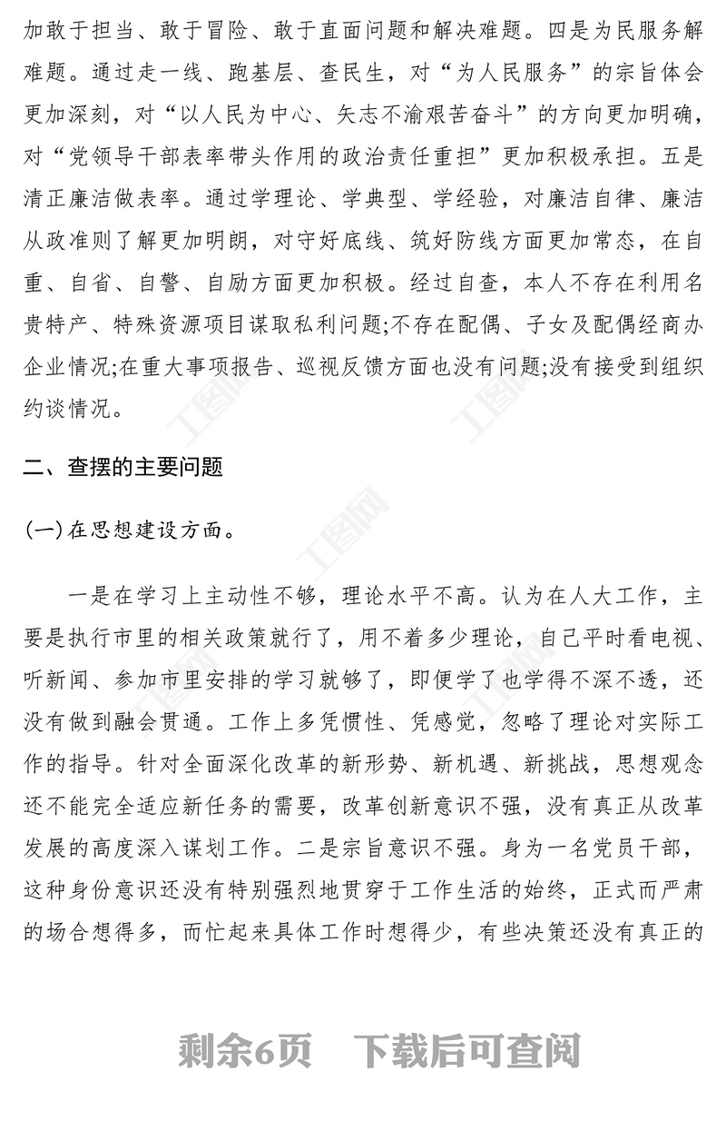 工圖網(wǎng)提供2021領(lǐng)導(dǎo)干部主題教育專題組織生活會個(gè)人檢視剖析材料(個(gè)人收獲查擺問題根源剖析整改措施)供會員免費(fèi)下載。更多精彩黨課PPT素材,盡在工圖網(wǎng)。