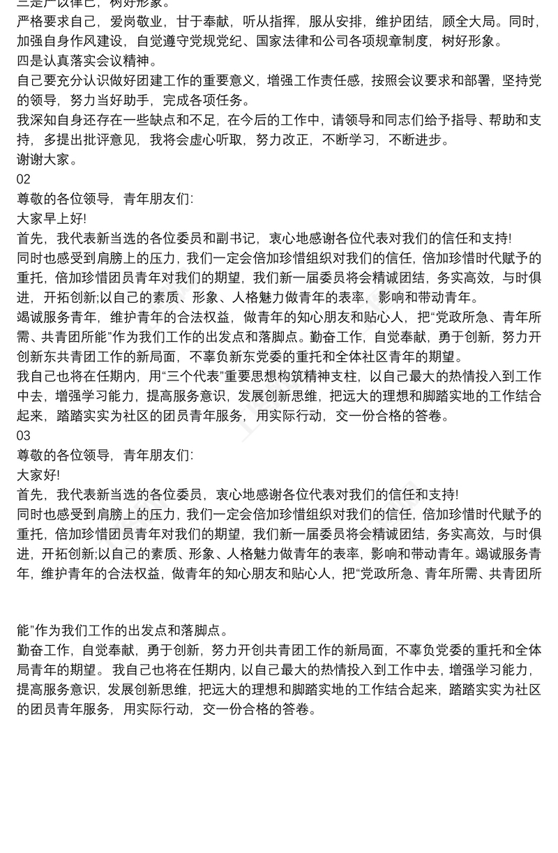 首頁 > WORD文檔 > 公文范文 > 新團委書記在團員大會上的表態發言3篇.DOCX 【圖片、文字、動畫均可編輯】