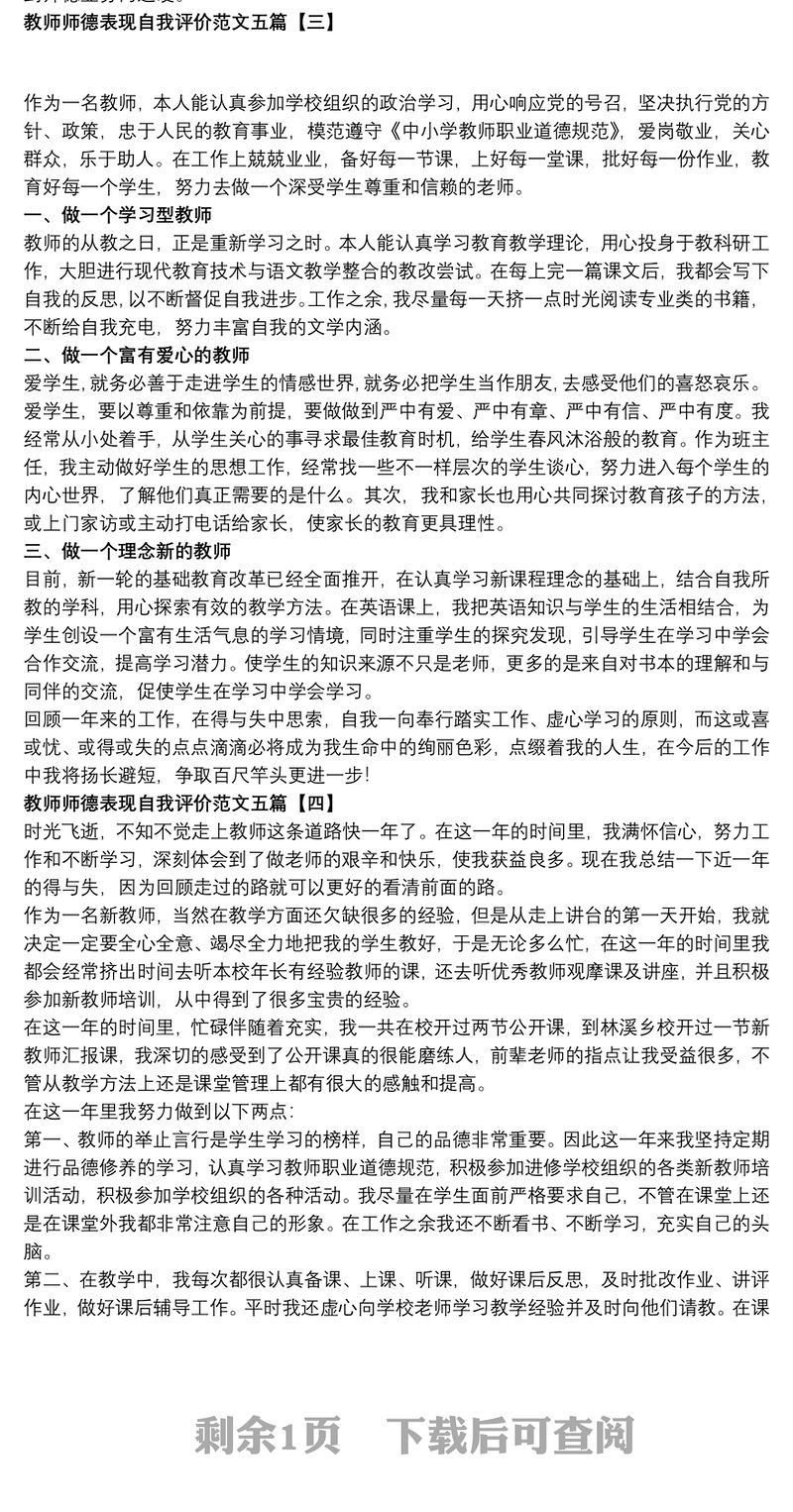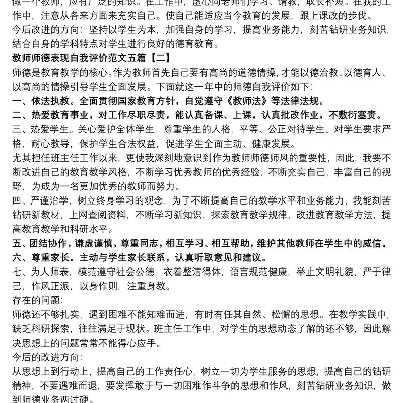 師德表現自我評價簡短包含