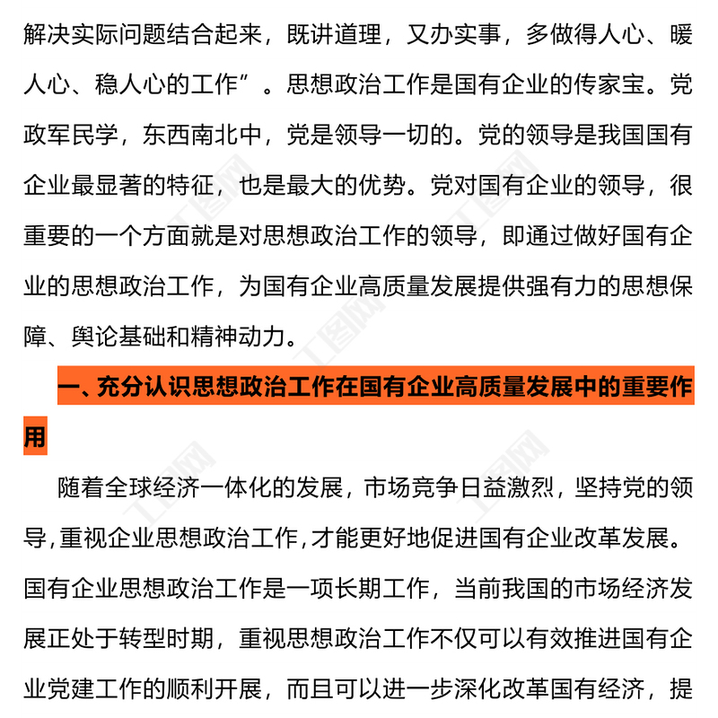黨課講稿 > 國企思想政治工作PPT紅色大氣以思政工作引領國企高質量發展黨課(講稿).DOCX