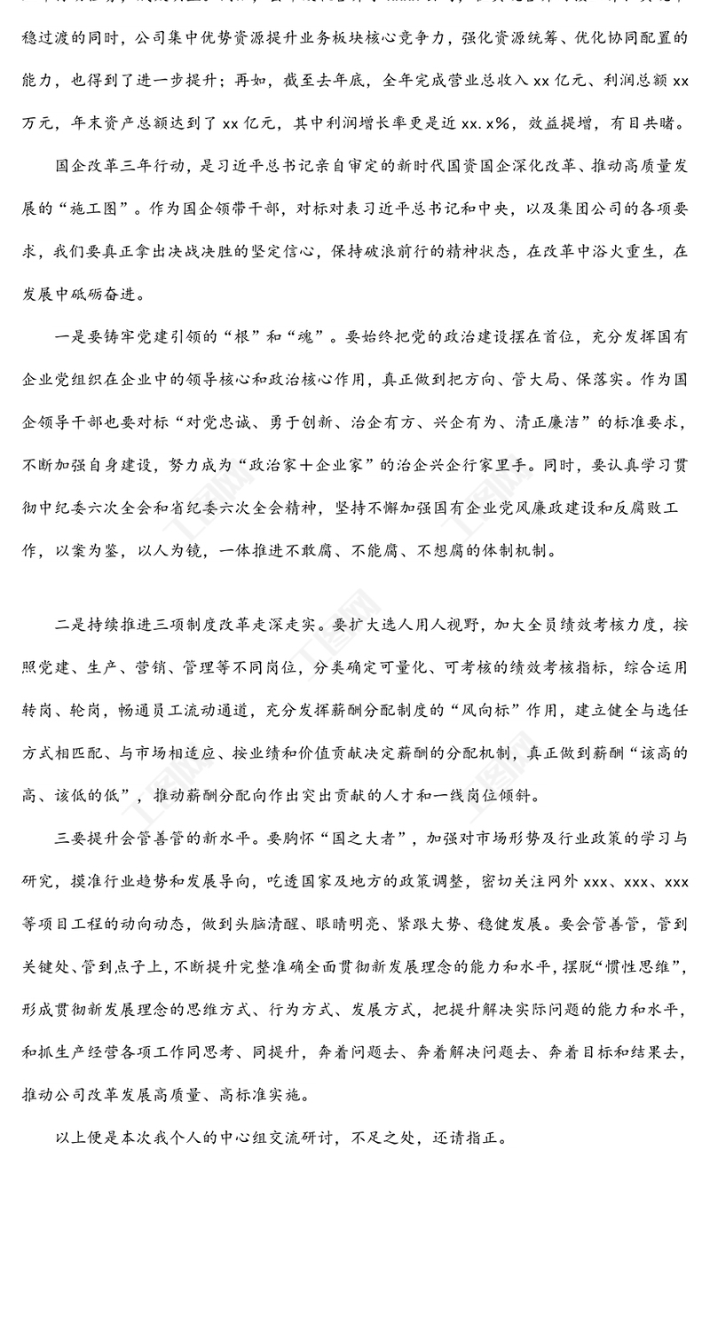 國(guó)企總經(jīng)理中心組學(xué)習(xí)研討發(fā)言材料(國(guó)企改革三年行動(dòng))