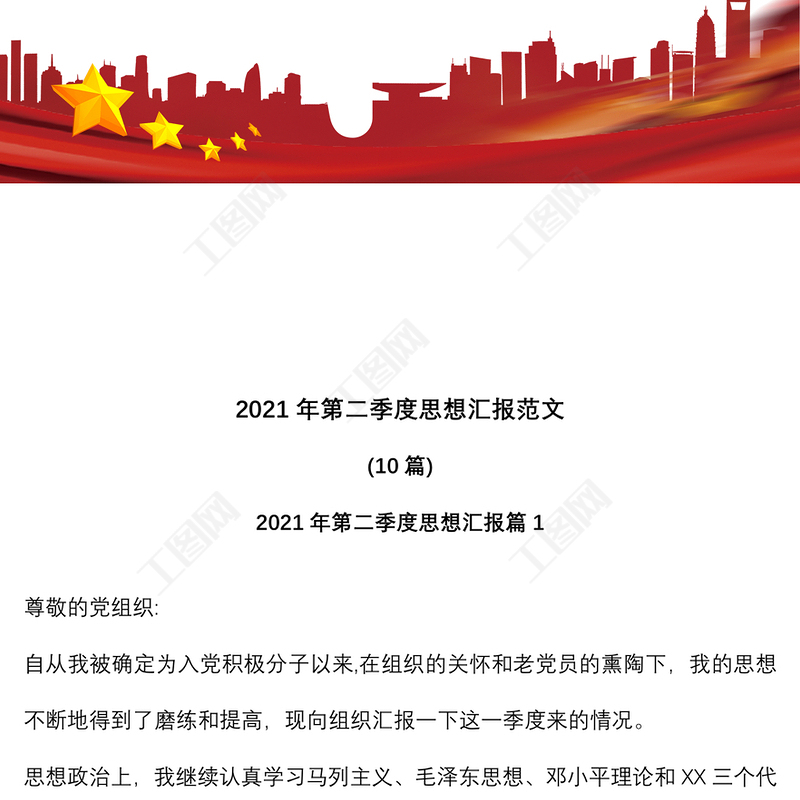 工圖網提供(10篇)2021年第二季度思想匯報范文供會員免費下載。更多精彩黨課PPT素材,盡在工圖網。