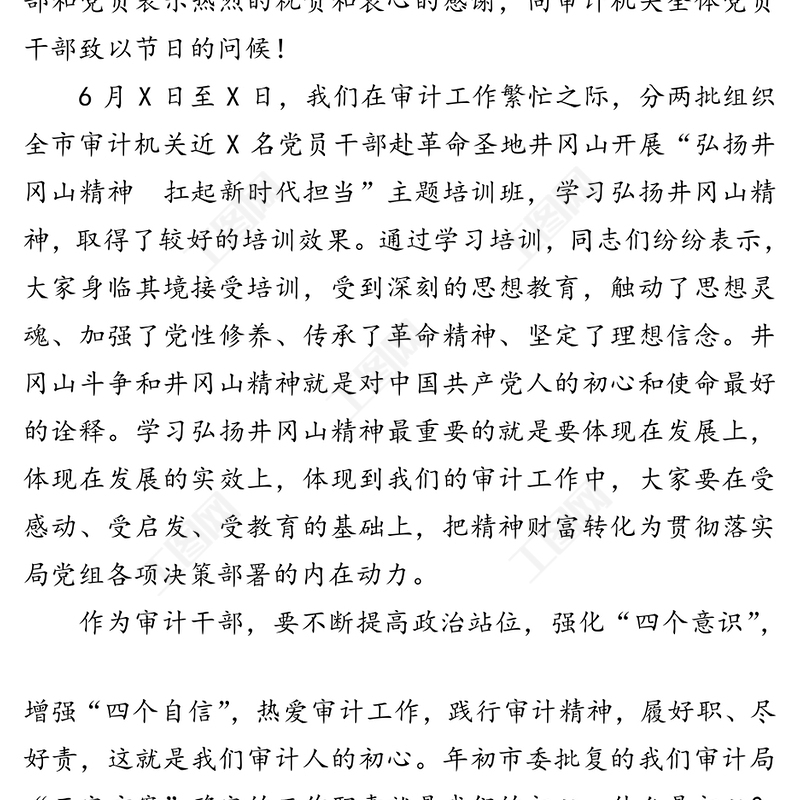 弘揚井岡山精神,扛起新時代擔當爭做審計機關“四個合格”黨員干部——局黨組書記“七一”黨課輔導報告,黨課輔導報告,公文 Array