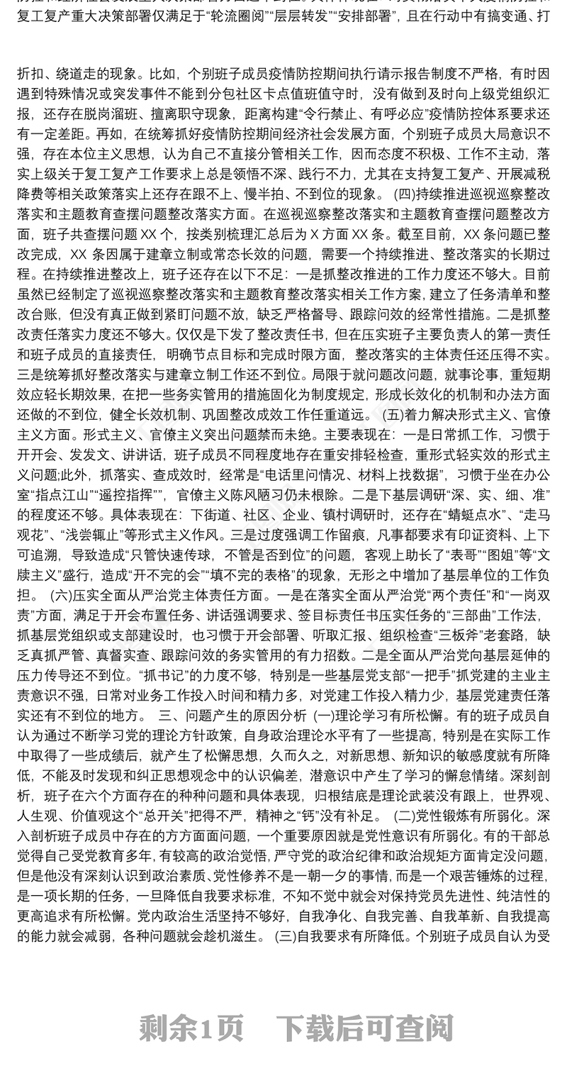 工圖網提供落實全面從嚴治黨主體責任營造良好政治生態專題民主生活會對照檢查發言材料供會員免費下載。更多精彩黨課PPT素材,盡在工圖網。