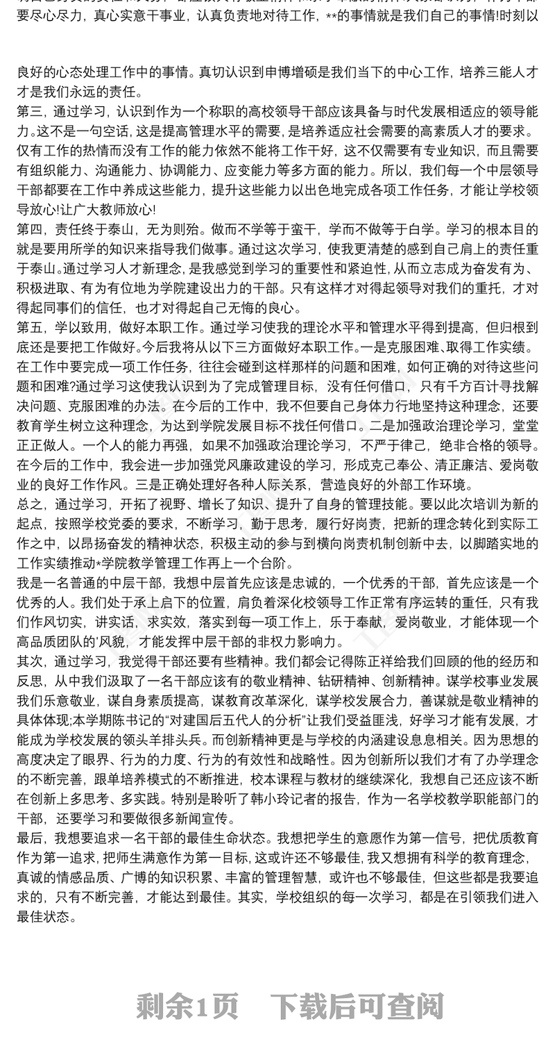 學校中層干部培訓總結范文包含