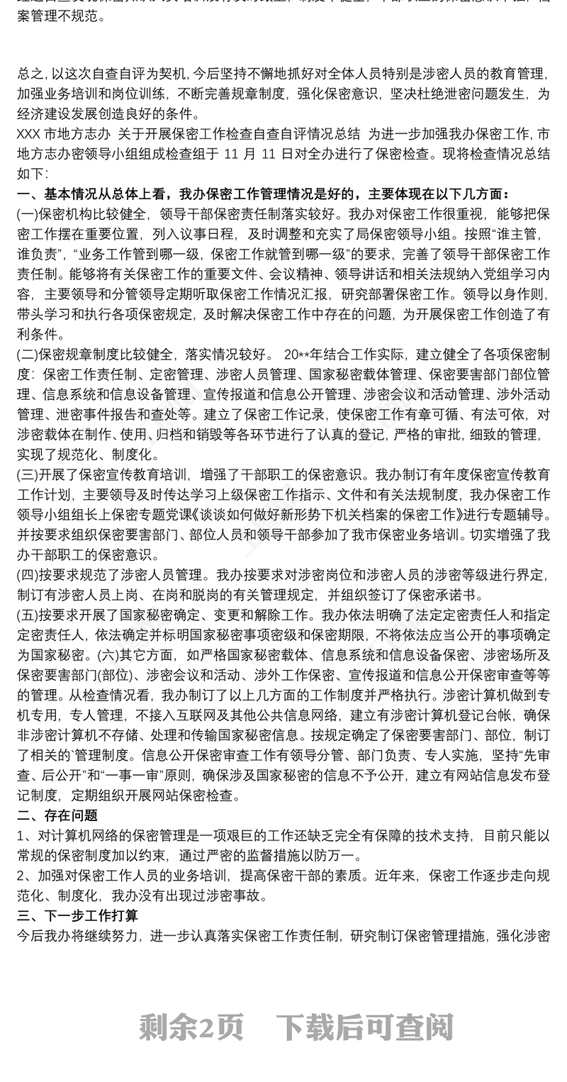 保密自查工作總結 保密自查自評工作總結3篇包含