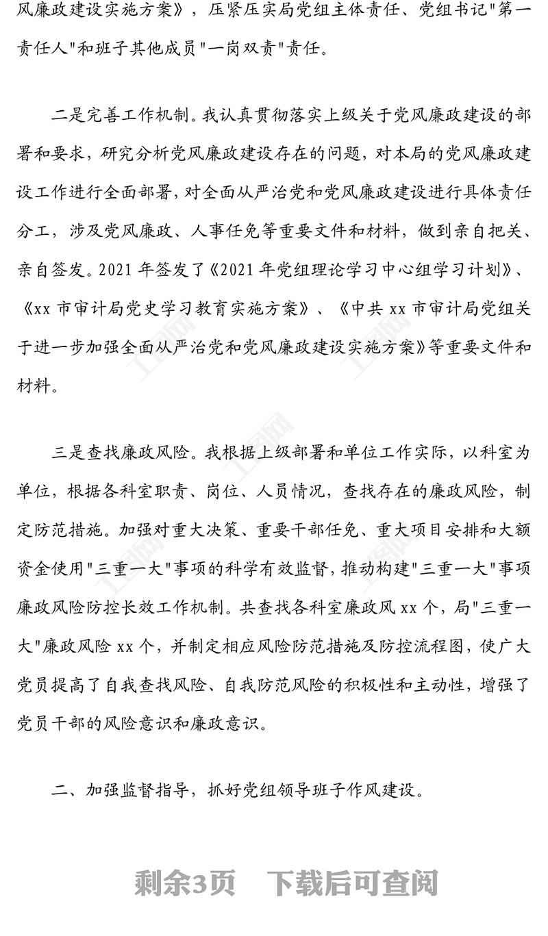 工圖網提供市審計局黨組??書記落實第一責任人責任情況報告供會員免費下載。更多精彩黨課PPT素材,盡在工圖網。