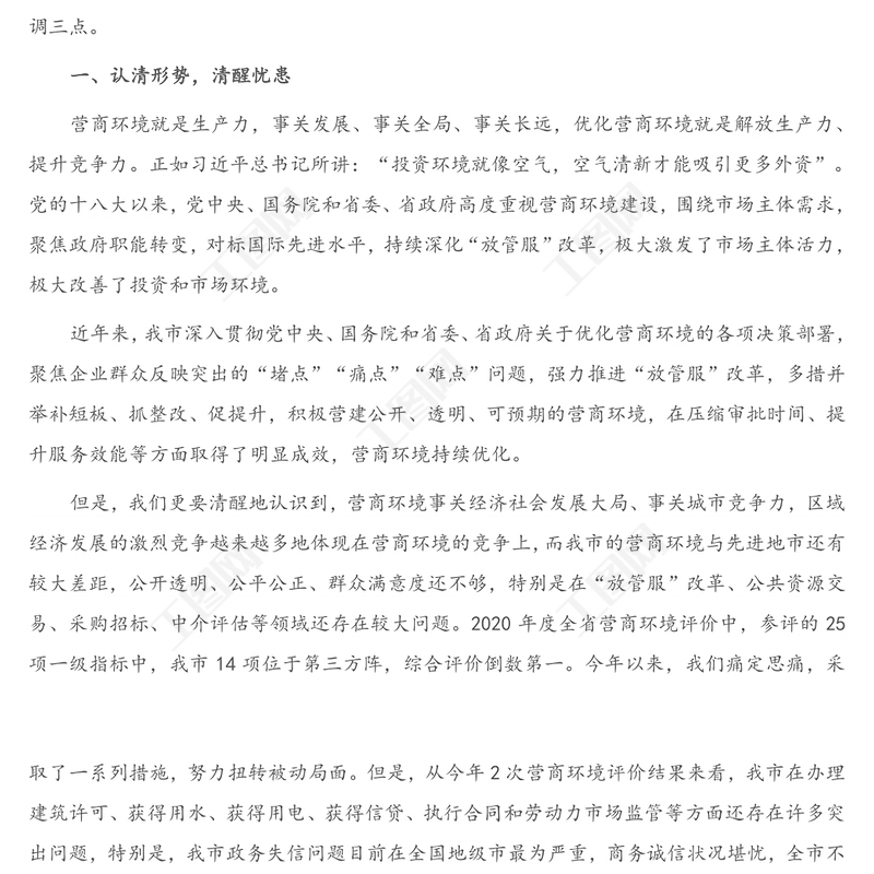 在全市優(yōu)化營商環(huán)境工作會議上的講話,營商環(huán)境,公文 Array