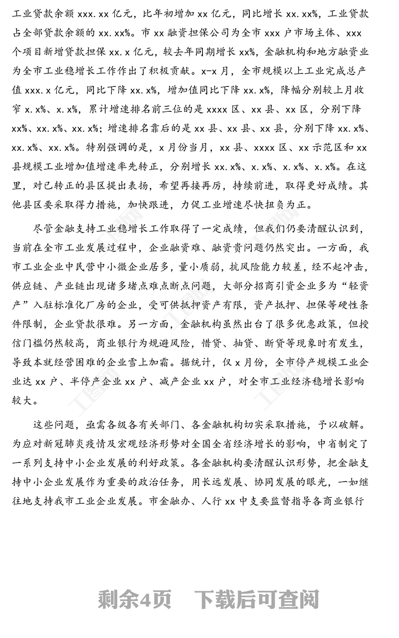 領導講話 > 副市長在全市金融支持工業穩增長暨政銀企對接工作會議上的講話(范文).DOCX