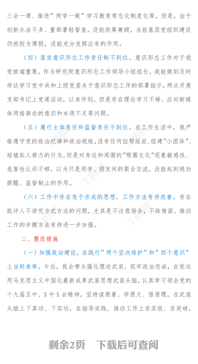 工圖網提供巡視整改專題民主生活會個人對照檢查材料-2供會員免費下載。更多精彩黨課PPT素材,盡在工圖網。