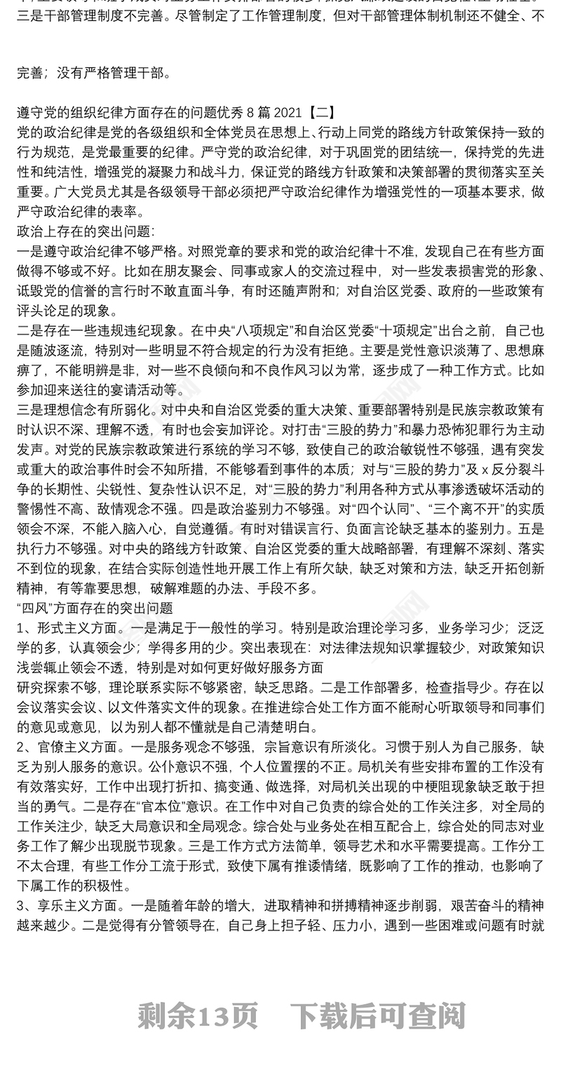 工圖網提供遵守黨的組織紀律方面存在的問題優秀8篇2021供會員免費下載。更多精彩黨課PPT素材,盡在工圖網。