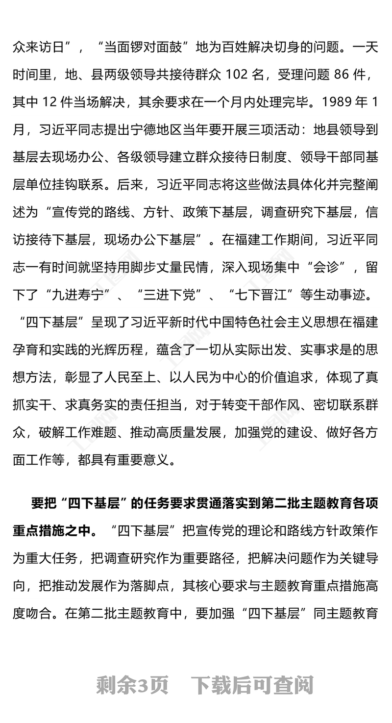 弘揚四下基層優良作風PPT把學習推廣四下基層作為第二批主題教育重要抓手黨課下載(講稿) Array
