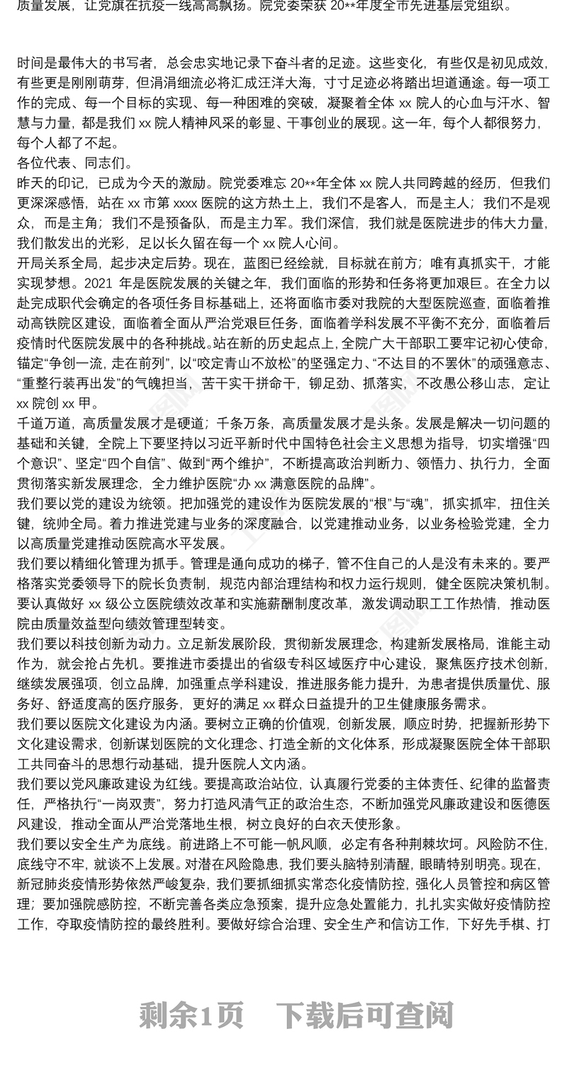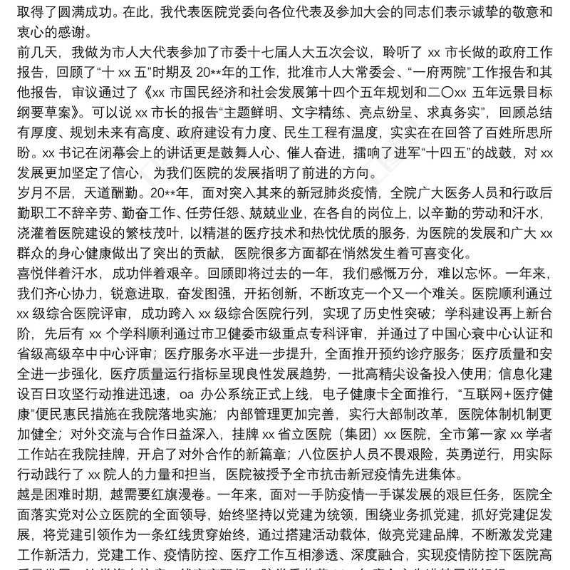 X院長在職工代表大會(huì)(職代會(huì))閉幕會(huì)上的講話