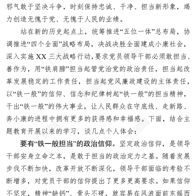 八個專題:“不忘初心牢記使命”主題教育擔(dān)當(dāng)作為專題研討發(fā)言:用“鐵一般擔(dān)當(dāng)”干事創(chuàng)業(yè)