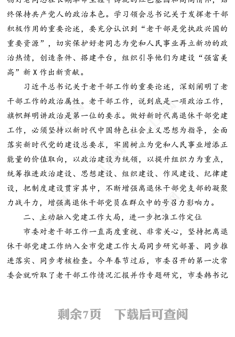 在全市離退休干部黨建工作交流會(huì)上的講話包含