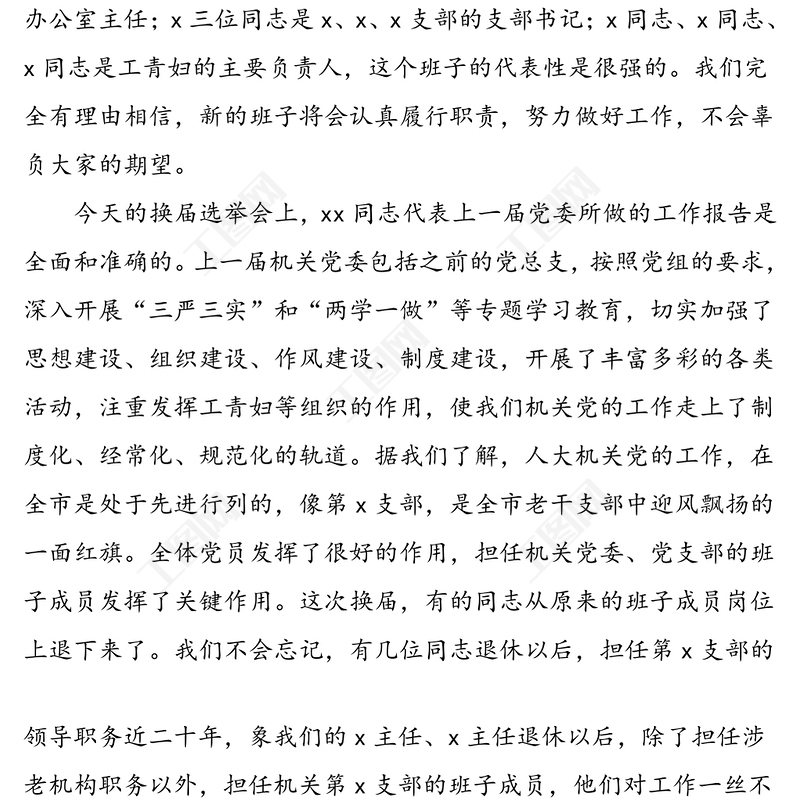 2篇機(jī)關(guān)黨委換屆選舉黨員大會(huì)領(lǐng)導(dǎo)講話范文2篇三會(huì)一課人大機(jī)關(guān),換屆選舉 Array