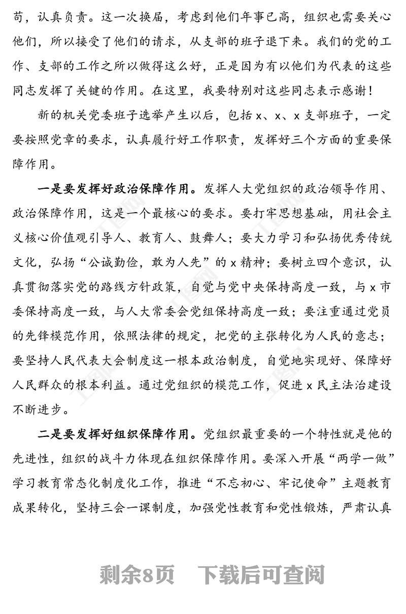 2篇機(jī)關(guān)黨委換屆選舉黨員大會(huì)領(lǐng)導(dǎo)講話范文2篇三會(huì)一課人大機(jī)關(guān)