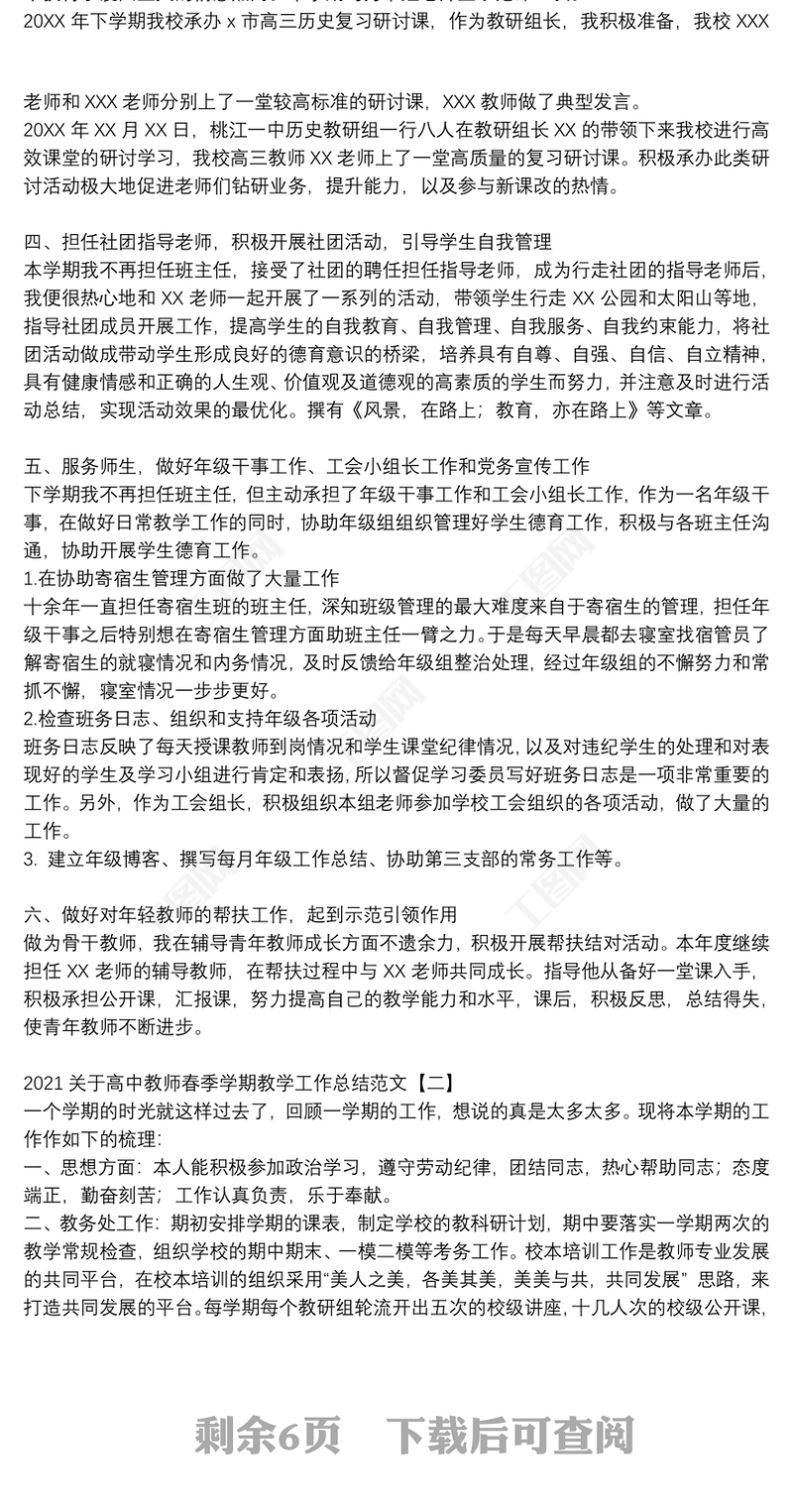 工圖網提供2021關于高中教師春季學期教學工作總結范文供會員免費下載。更多精彩黨課PPT素材,盡在工圖網。