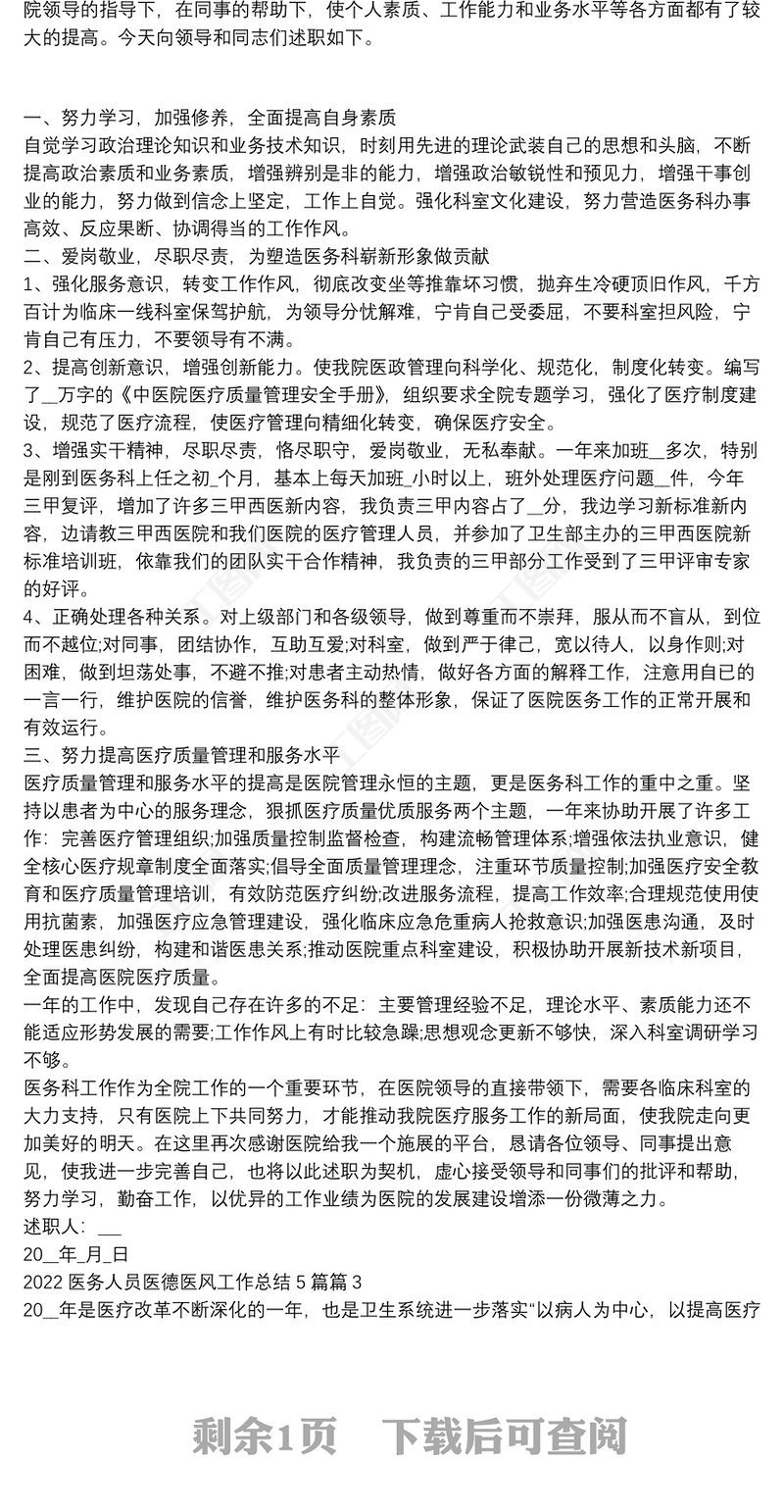 2022醫務人員醫德醫風工作總結5篇3篇 Array