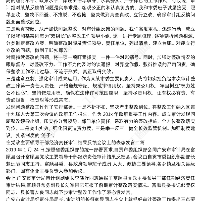 > 演講稿 > 在黨政主要領(lǐng)導(dǎo)干部經(jīng)濟(jì)責(zé)任審計(jì)結(jié)果反饋會(huì)議上的表態(tài)發(fā)言三篇.DOCX 【圖片、文字、動(dòng)畫均可編輯】