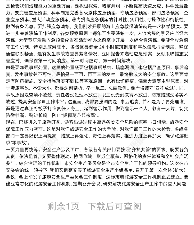 在全市旅游安全生產委員會第一次全體(擴大)會議上的講話 Array