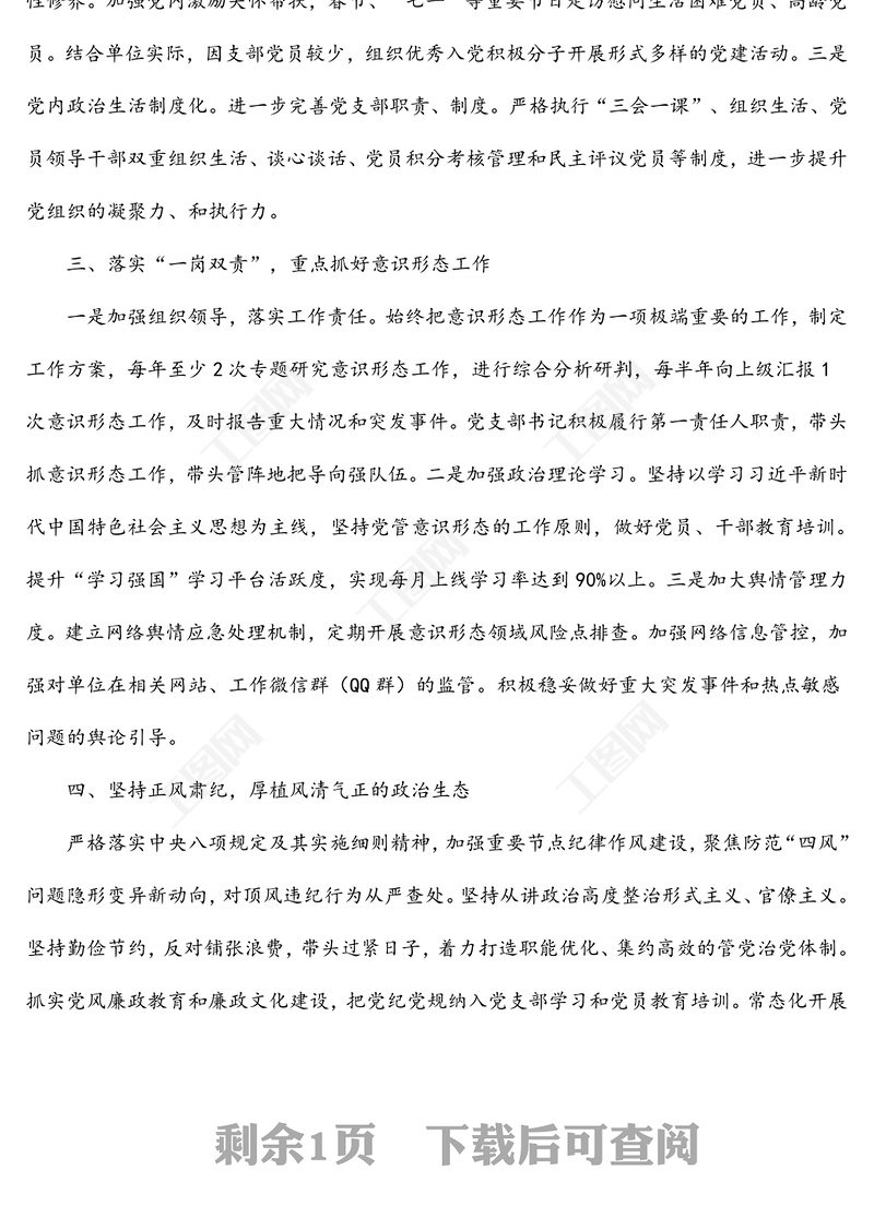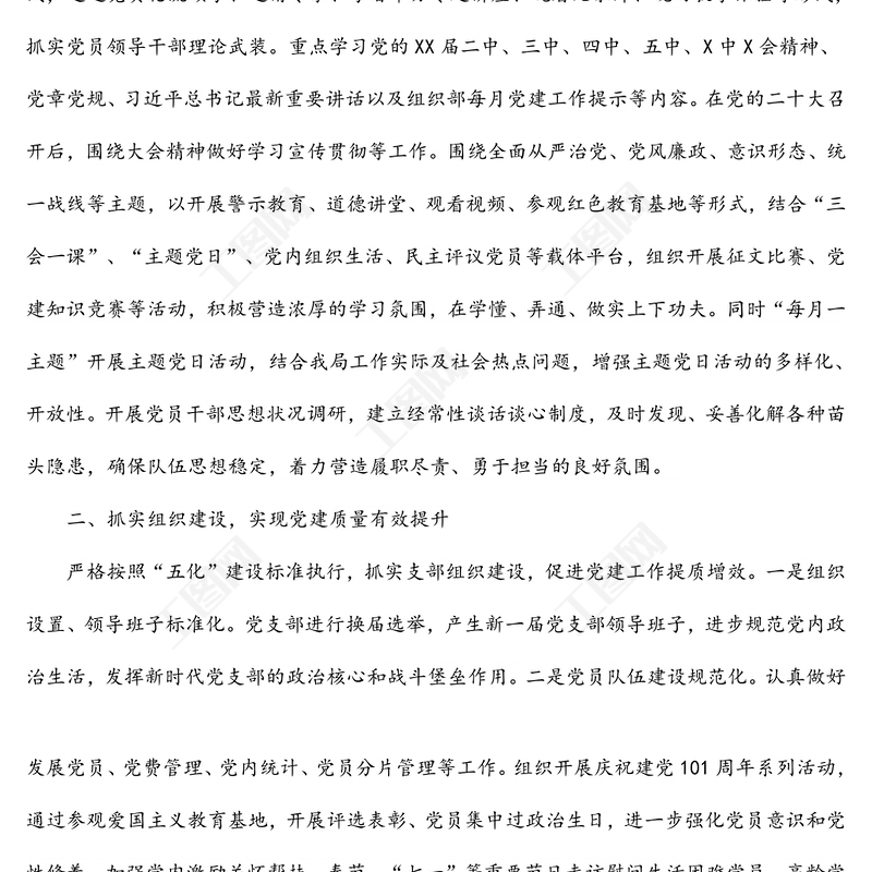 落實全面從嚴治黨主體責任不斷提升黨建工作水平黨建工作計劃包含