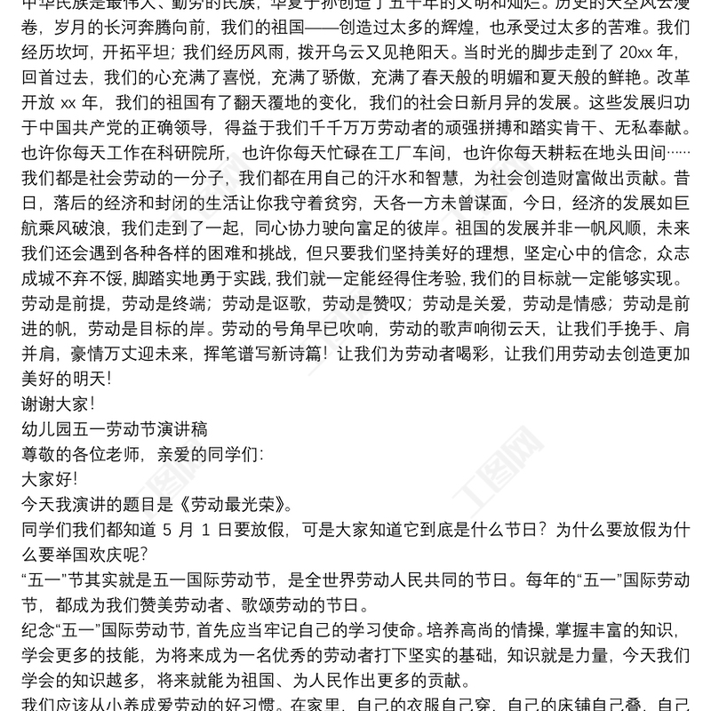 工圖網(wǎng)提供幼兒園五一勞動(dòng)節(jié)演講稿3篇供會(huì)員免費(fèi)下載。更多精彩黨課PPT素材,盡在工圖網(wǎng)。