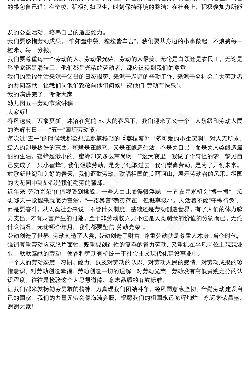 幼兒園五一勞動(dòng)節(jié)演講稿3篇 Array