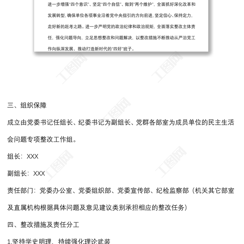 工圖網提供單位專題民主生活會整改工作方案供會員免費下載。更多精彩黨課PPT素材,盡在工圖網。