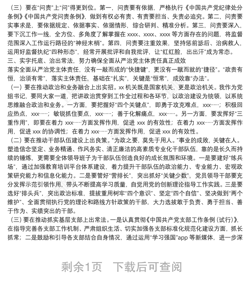 2021【從嚴治黨】全面從嚴治黨主體責任研討發言包含