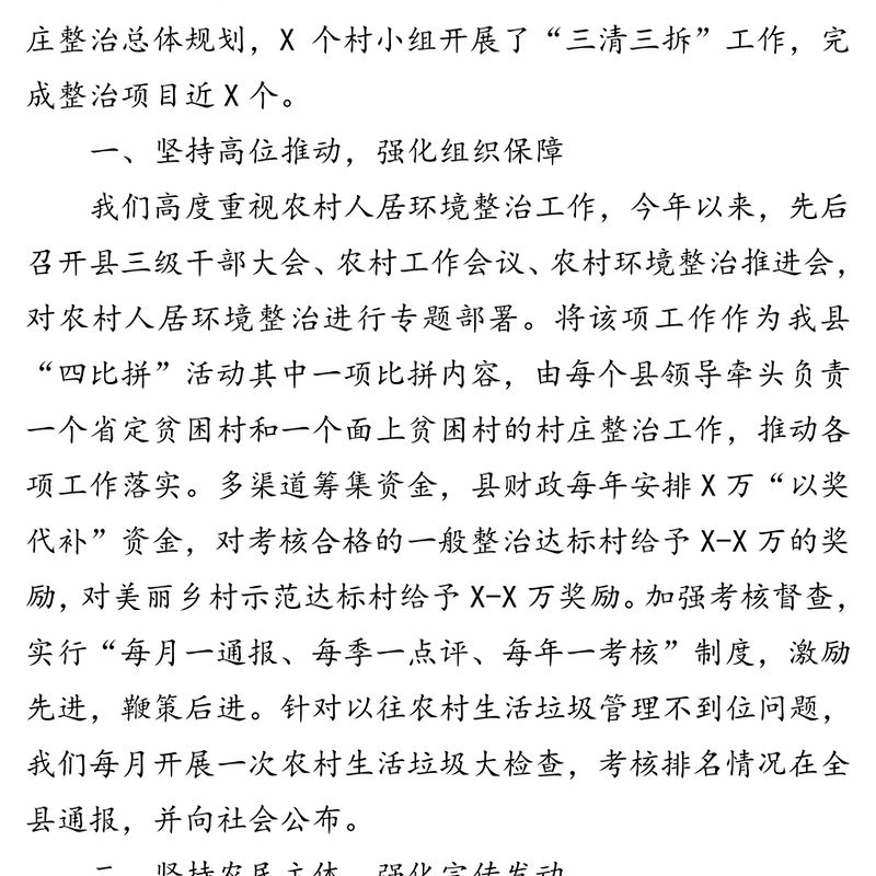 2021xx縣實施鄉村振興戰略暨推進農村人居環境整治工作情況匯報(工作總結)包含