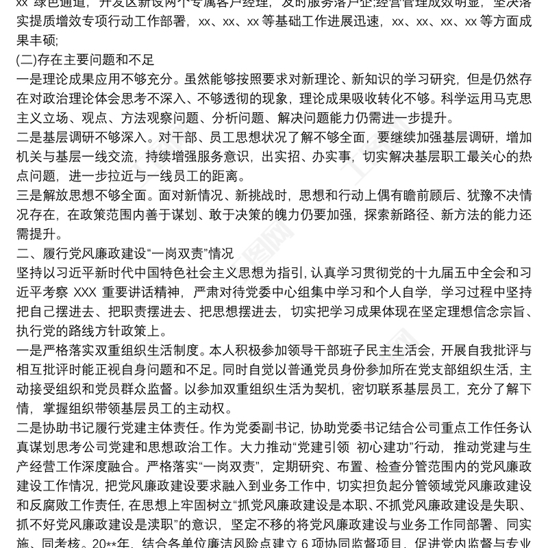 20XX年度述職述責述廉報告包含