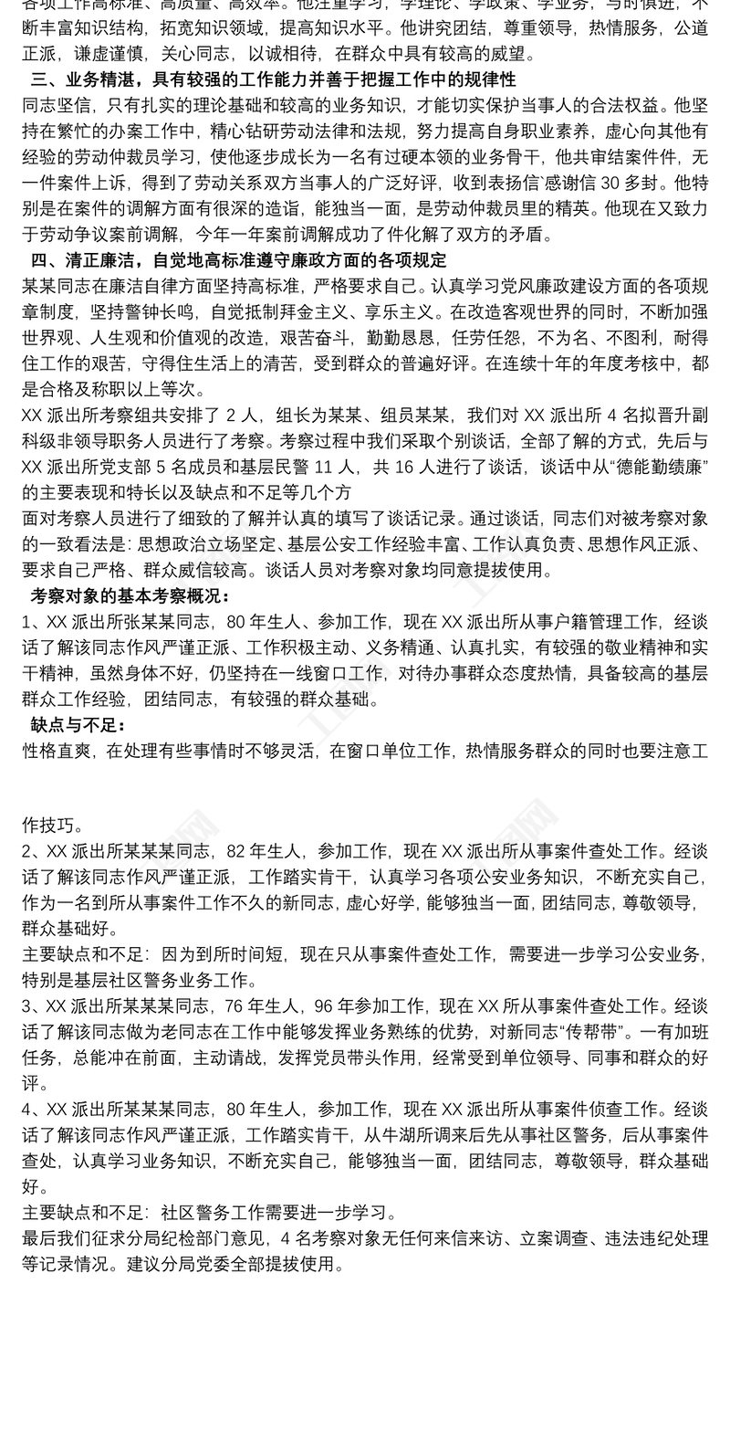 X優秀公務員晉升考察材料包含
