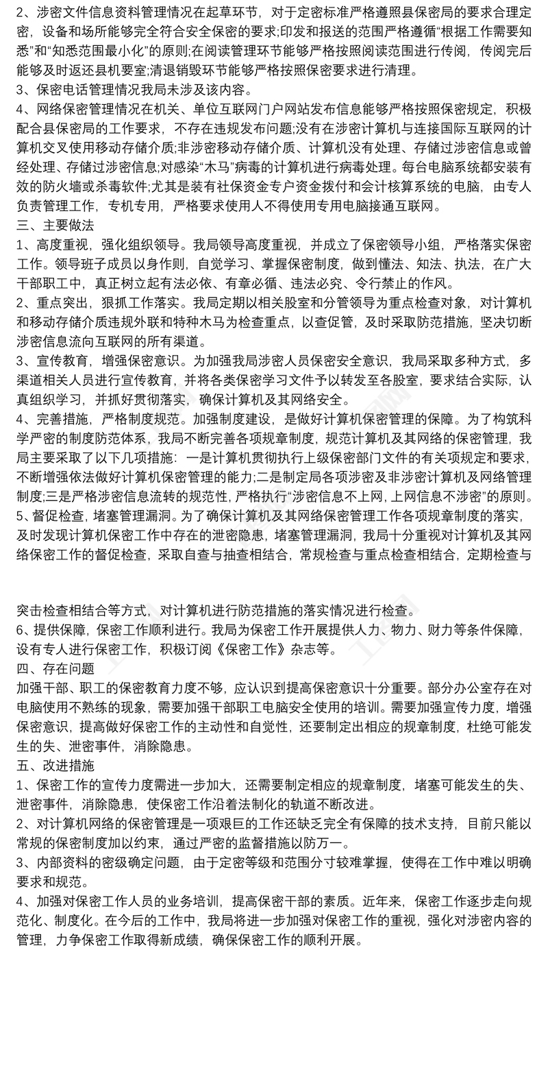 xx縣財(cái)政局保密工作年度自查報(bào)告