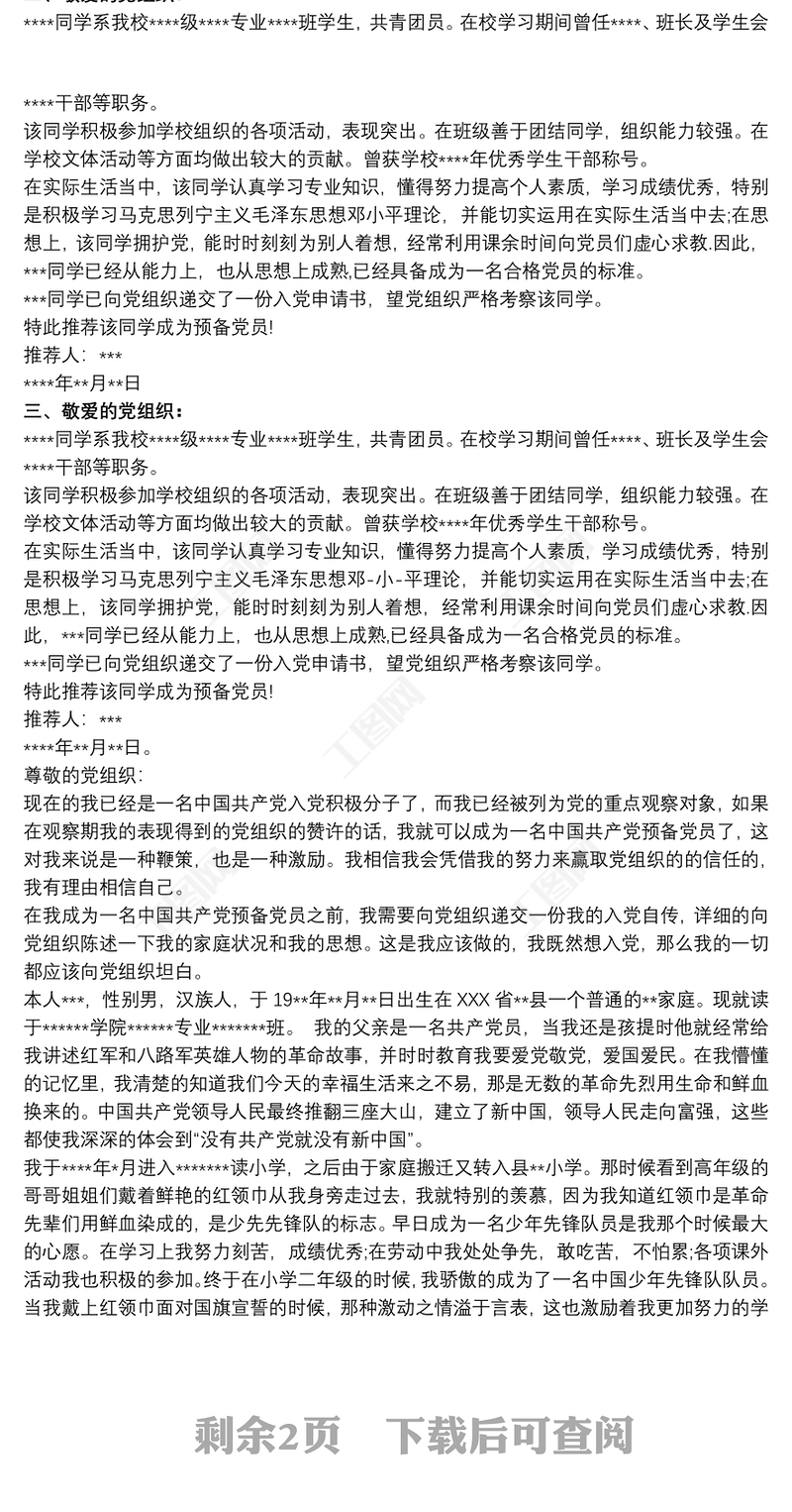 工圖網提供入黨積極分子推薦材料(黨員推薦)供會員免費下載。更多精彩黨課PPT素材,盡在工圖網。