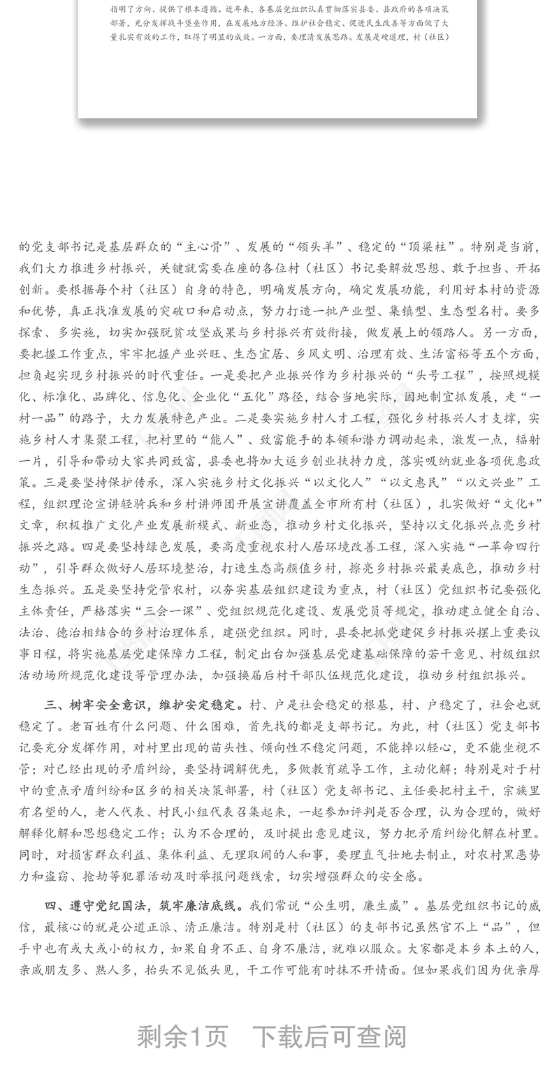 在全縣新一屆村(社區(qū))黨組織書(shū)記履職第一課培訓(xùn)班上的講話
