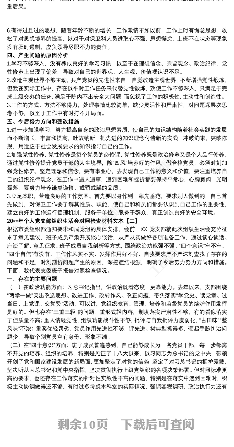 20xx年個人黨支部組織生活會對照檢查材料文本 Array